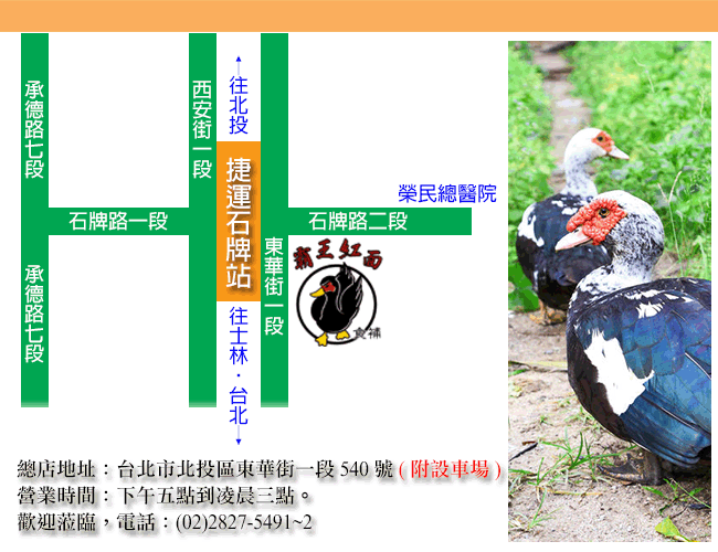 霸王薑母鴨•歡迎您的蒞臨 電話:02-2827-5492 地址:台北市北投區東華街一段540號